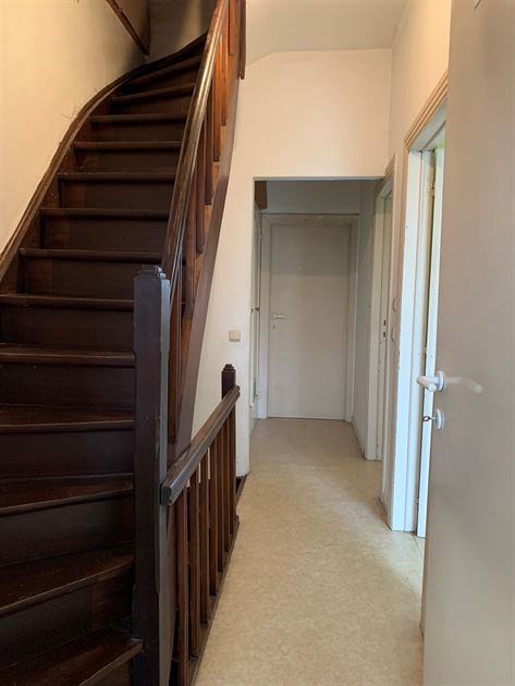 Op het gelijkvloers vinden we de inkomhal, toegang tot de kelder en garage, een apart toilet, de leefruimte met eetkamer, de geïnstalleerde keuken met zicht op de tuin. Via de eetkamer bereiken we het terras en gezellige stadstuin. Via de trap kunnen we naar de eerste verdieping gaan. Hier vinden we de nachthal, 2 ruime slaapkamers en 1 kleinere slaapkamer, de badkamer met ligbad en toilet. Er is een vaste trap naar de zolderverdieping, momenteel is de zolder niet ingericht maar het is mogelijk om 2 kamers te maken mits de nodige vergunningen en werken.