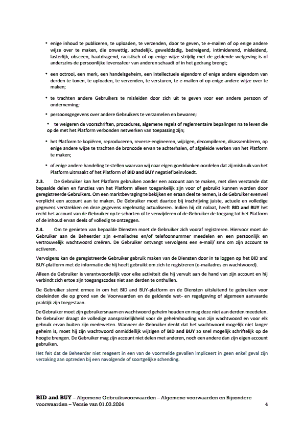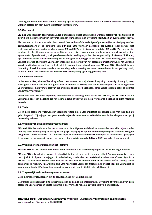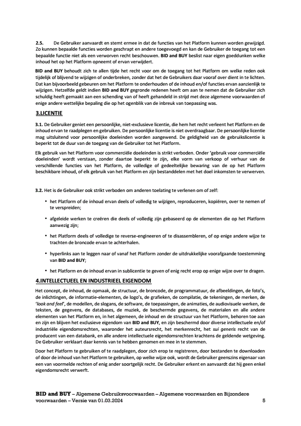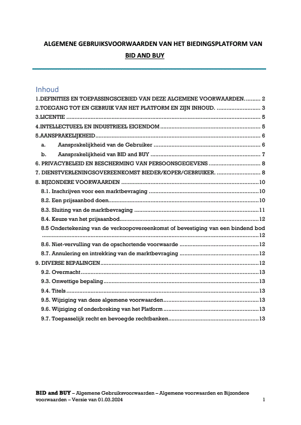 Lees de algemene voorwaarden vooraleer je start met bieden. Deze bevinden zich in de voetbalk.