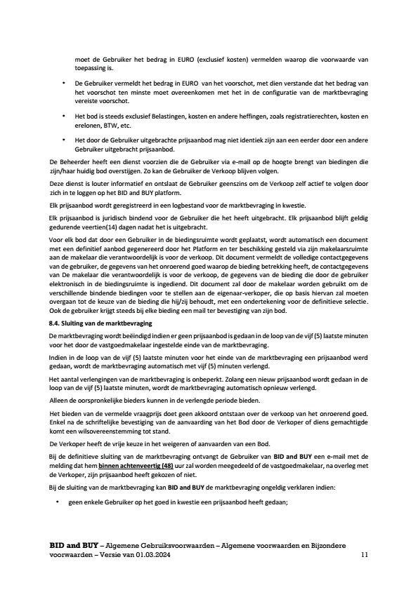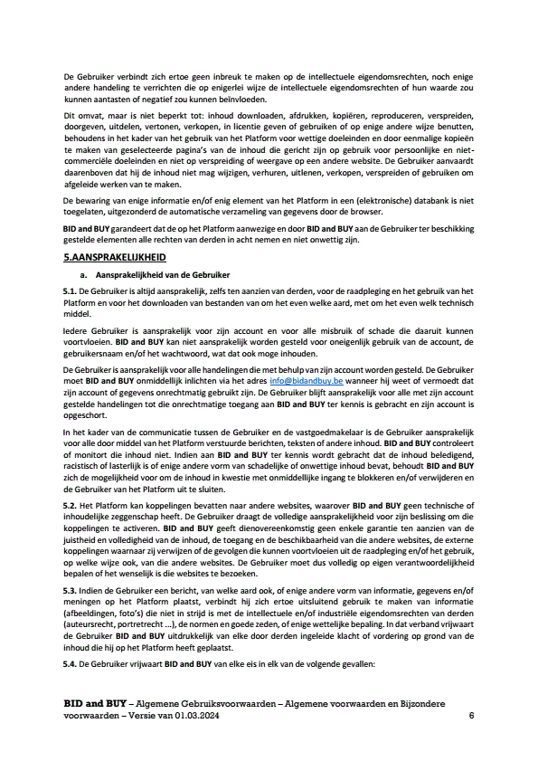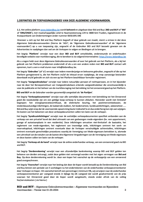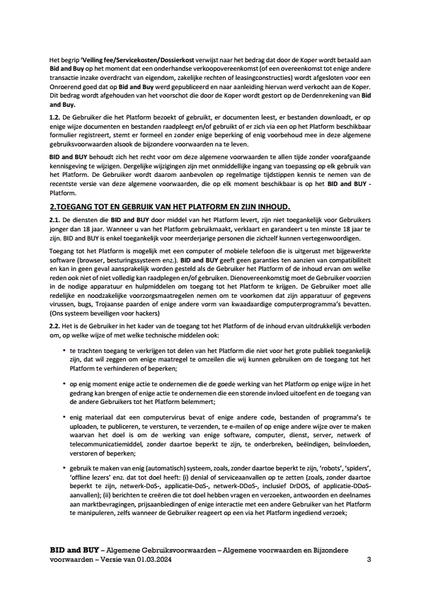 Wanneer je het bedrag van het bod (manueel of automatisch) heeft ingesteld ga je nu jouw bod plaatsen. Dit doe je door op ‘Bod Plaatsen’ te klikken. Vervolgens lees je onze algemene gebruiksvoorwaarden volledig door en bevestig je dat je de algemene voorwaarden aanvaard door ‘Ik aanvaard de algemene voorwaarden’ aan te vinken. Dan zal je deze algemene voorwaarden kunnen aanvaarden door op de knop ‘Aanvaarden’ te klikken. Controleer en bevestig uw bod en klik vervolgens op ‘Bevestigen’.